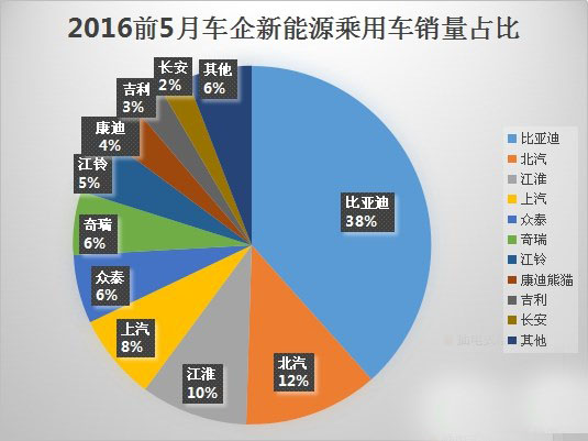 2016年前5月新能源乘用車車企銷量排行榜