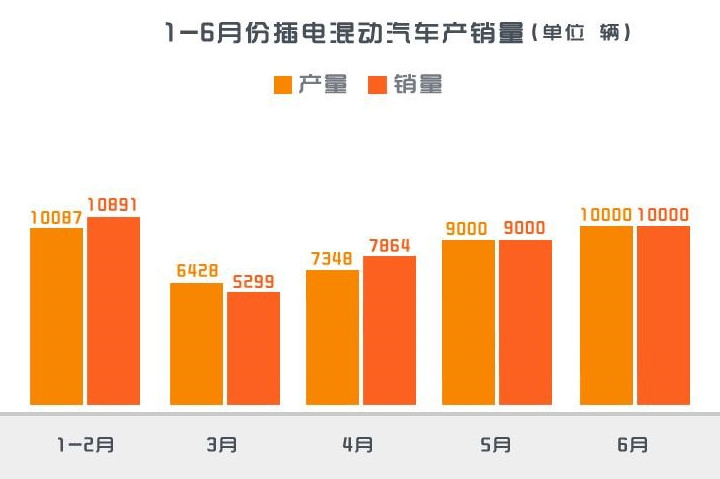 2016年1-6月插電混動車產銷走勢圖