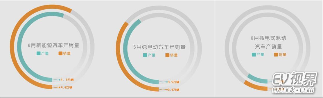 今年6月,中國新能源汽車產銷量為4.5萬輛和4.4萬輛,同比增長為107.4%和107.3%。其中插電式混合產銷量均為1萬輛,同比增長分別為61.3%和61.8%;純電動汽車產銷量分別為3.5萬輛和3.4萬輛,同比增長126.1%和126.6%。