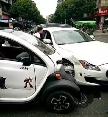 針對低速電動車的報道,如果只突出缺點的一面,不考慮具體的環境,是沒有意義的。上圖的低速電動車與汽車相撞后,并沒有業內所說的那么不堪一擊,沖壓、焊裝、涂裝、總裝,是車企外殼的四大生產工藝,據調查,御捷、雷丁、麗馳、道爵、德瑞博、寶雅、時風等車企已完成對四大工藝車間的建成投產。在外殼方面,安全性能并不像想象中的那么“豆腐渣”。