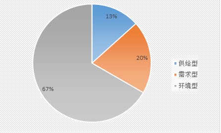 統計分析表明,這些政策工具中,環境型多,占67%份額,其次是需求型占 20%,少的供給型占 13 %。