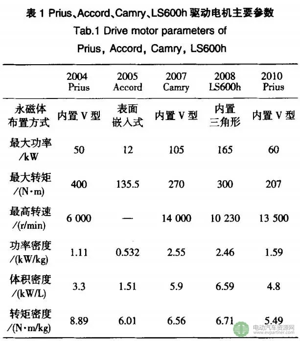 由表l可以看出.內置式轉子結構的2004Prius、2007CaII研、2010Prius和2008Ls600h驅動