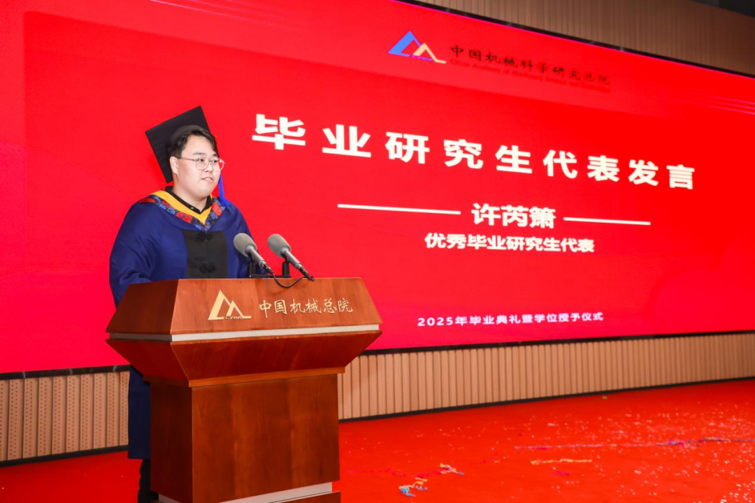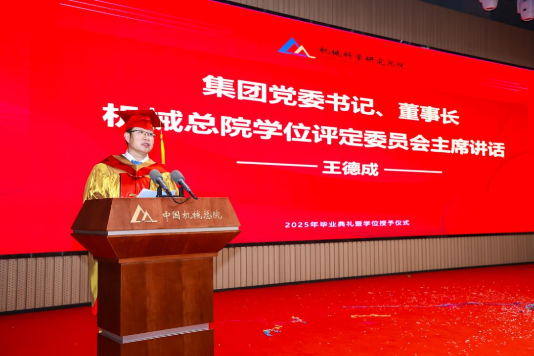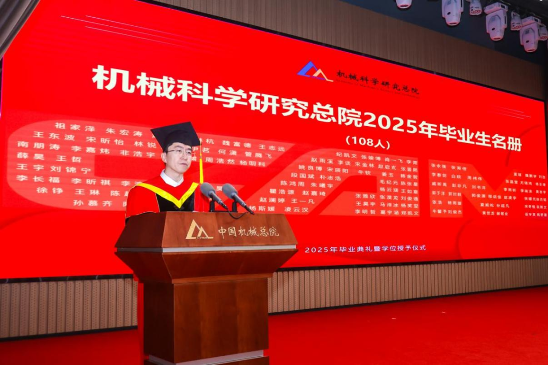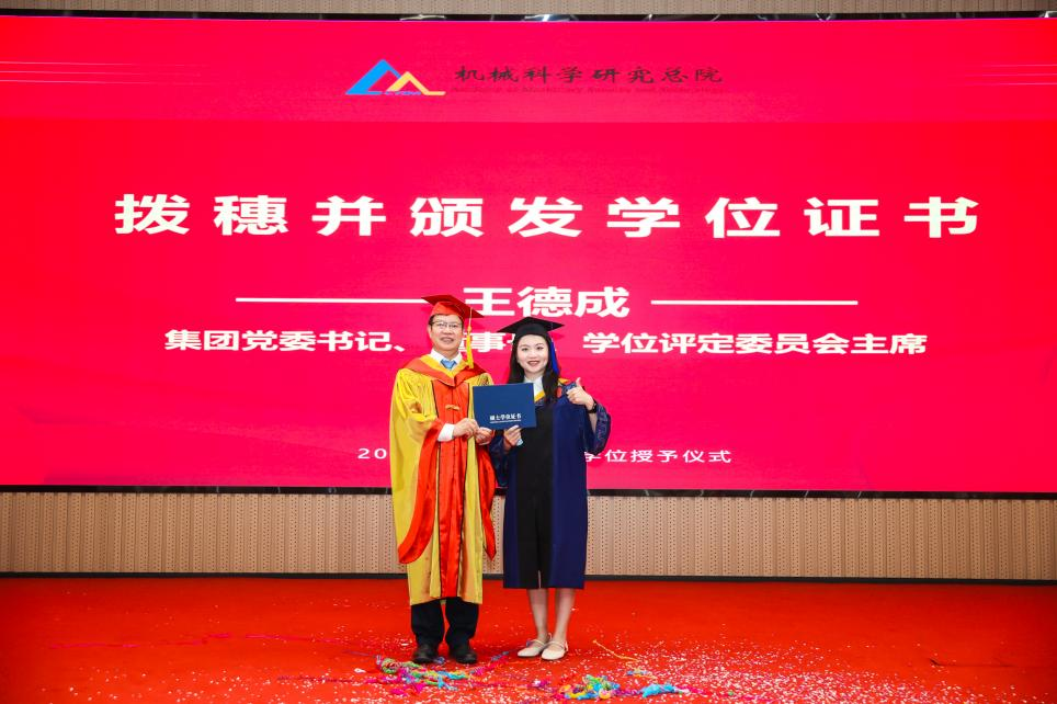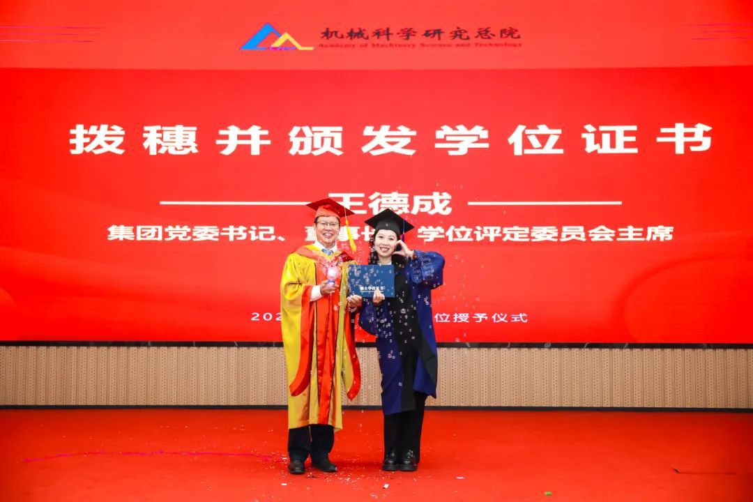 李愛國(guó)宣讀了《機(jī)械科學(xué)研究總院2025屆畢業(yè)生學(xué)位授予決定》,王德成為每位畢業(yè)生撥穗正冠并頒發(fā)學(xué)位證書。
